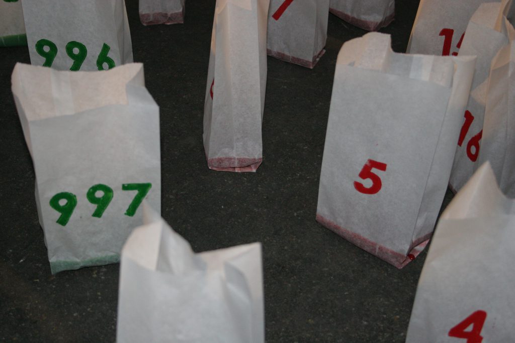 1000 bags | installation of 1000 numbered sandwichbags with epoxy